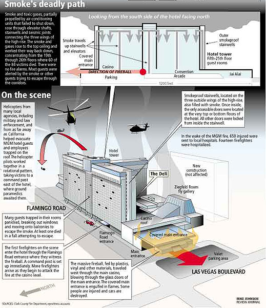 The result was 87 people lost their lives in the MGM Grand fire. A sprinkler system would have cost less than $200,000 but the hotel appealed for a waiver.